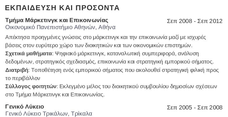- Εστιάστε στην πιο πρόσφατη εμπειρία και τα προσόντα σας